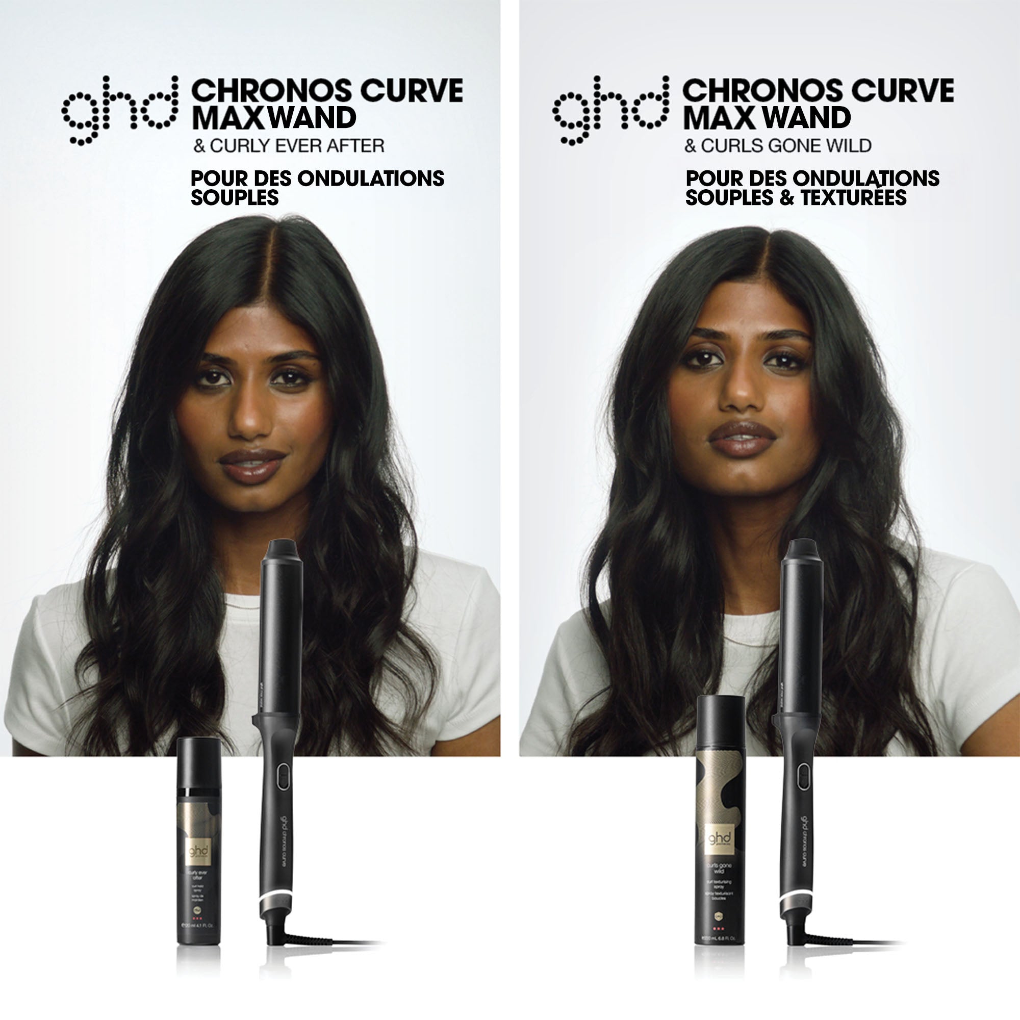 Découvrez le boucleur ghd Chronos Curve Max Wand, votre nouvel allié pour créer facilement des ondulations souples et légères, grâce à son diamètre de 38mm. Doté de la technologie avancée curl-responsive, ghd max wand offre des résultats haute-définition jusqu'à 3x plus rapides¹, pour des boucles sans frisottis² qui tiennent toute la journée³. Créez des ondulations à l'infini en 3 à 5 secondes, sans dommage dû à une chaleur extrême⁵.